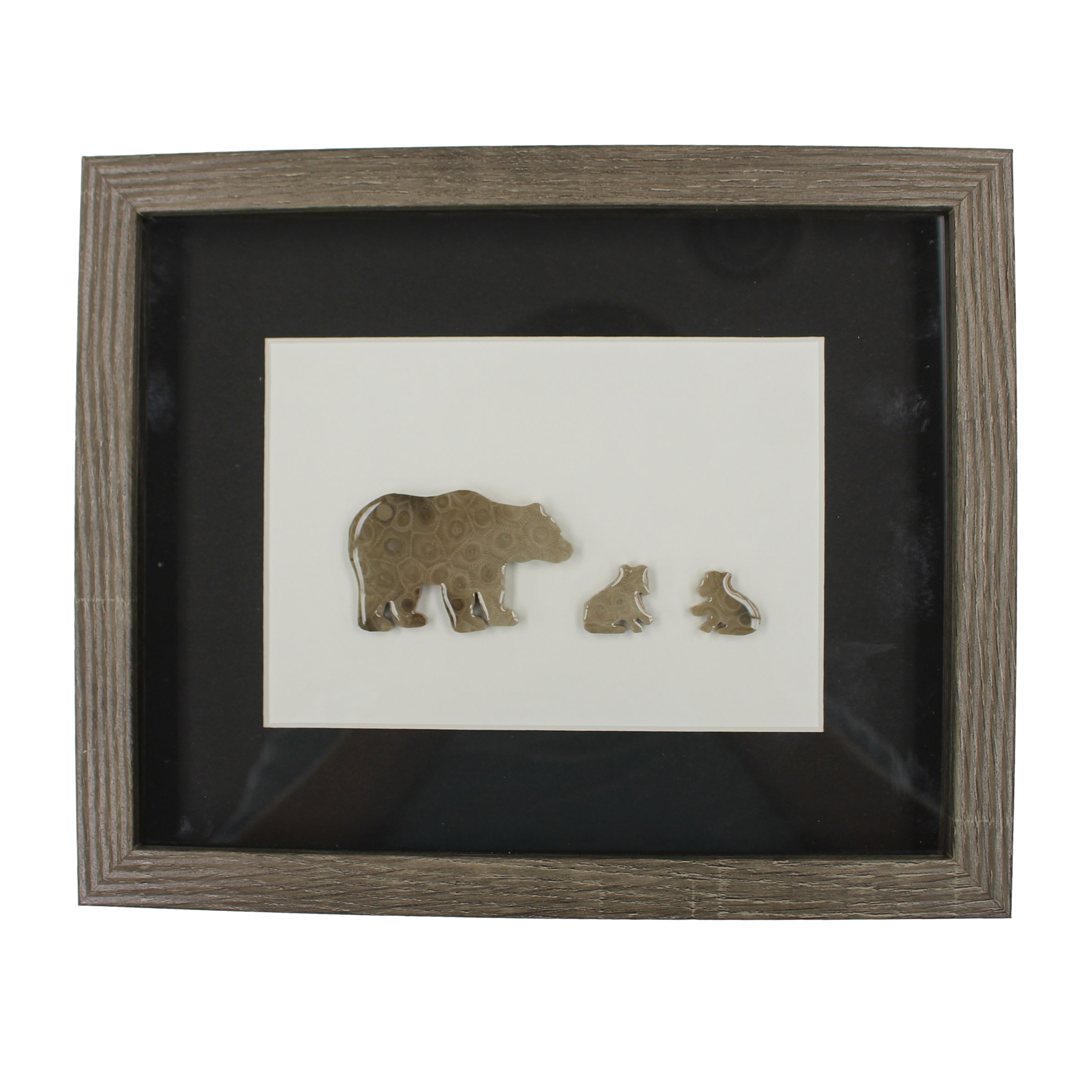 PETOSKEY BEAR IN FRAME W/2 CUBS LIGHT WOOD FRAME